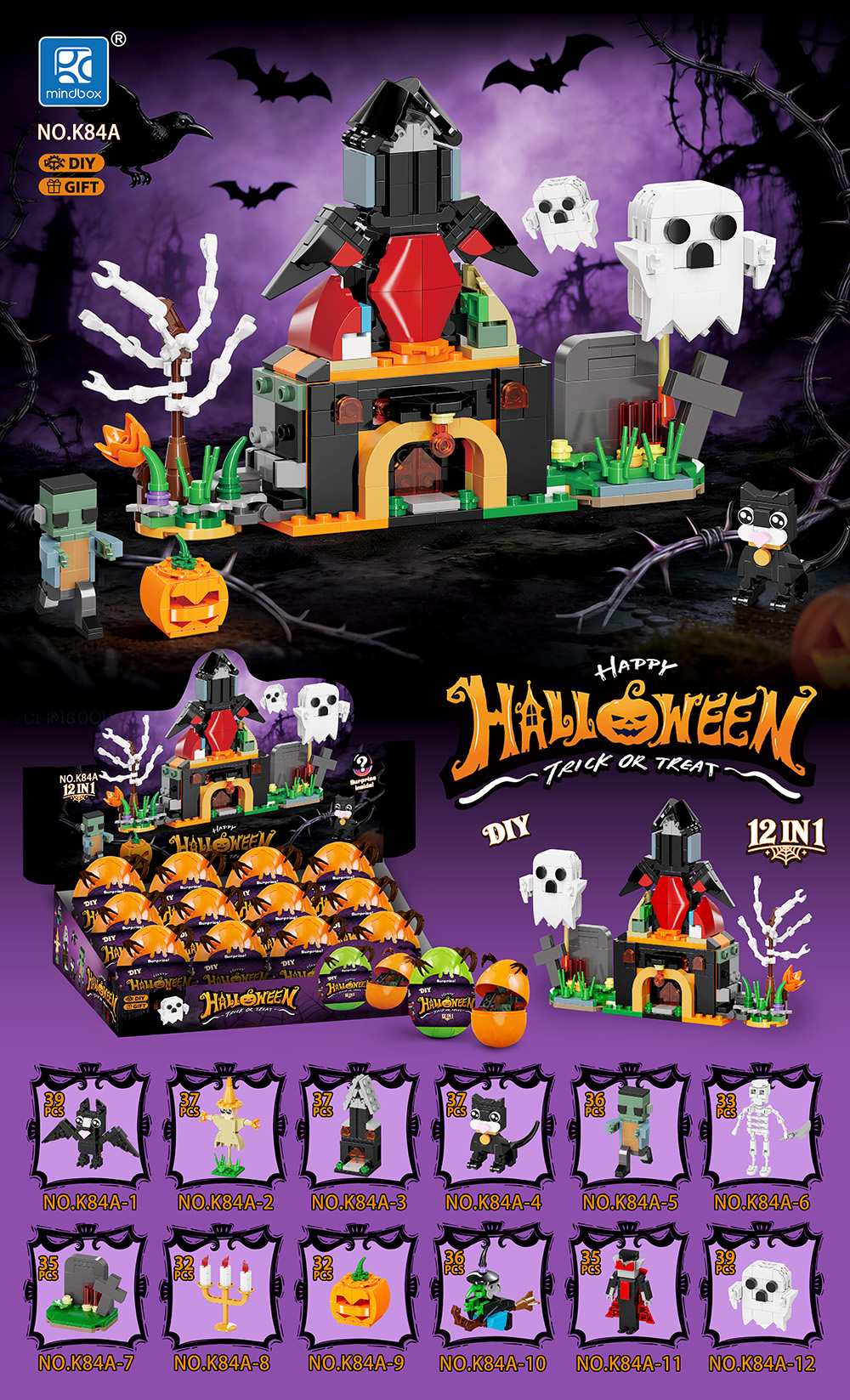 品 名:万圣节狂欢夜积木(12款英文)